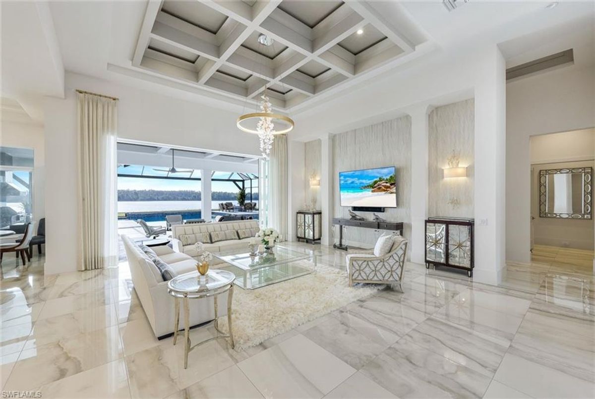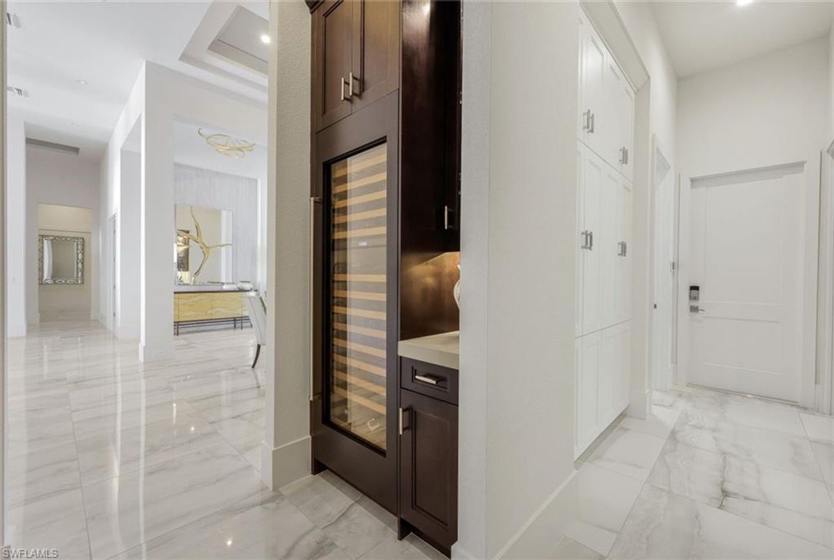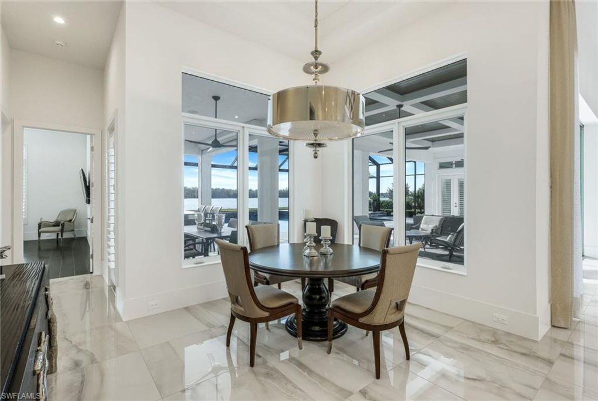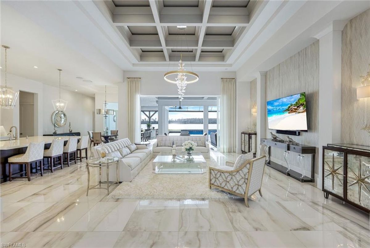 Welcome to this extraordinary Clairborne II custom estate by Stock Development, ideally positioned on one of the largest lakefront lots in the prestigious, resort-style community of WildBlue. This 4-bedroom, 4.5-bathroom residence with a bonus room, private den, and 4-car garage offers an impressive blend of sophistication, comfort, and design excellence.Step inside and discover soaring coffered ceilings, Italian porcelain and wood floors, and invisible surround sound speakers that create an ambiance of elegance throughout. The chef’s kitchen is a showstopper, featuring a Wolf gas range, Subzero appliances, 2” quartz countertops, and extensive custom cabinetry — perfect for everyday living and entertaining alike.Every bedroom is an en-suite retreat, offering privacy and luxury for guests and family. The primary suite is a sanctuary, complemented by stunning water views and spa-like amenities. Added conveniences include two tankless water heaters, 9-inch baseboards with integrated outlets, a 65 kW Kohler generator, and an oversized laundry room.The outdoor living space redefines Florida luxury: marble pavers, a custom saltwater pool, a gas fireplace, firepit, and a fully-equipped summer kitchen featuring an Alfresco grill with built-in grill, griddle, and smoker — an entertainer’s dream. With breathtaking views of WildBlue’s iconic big lake, the backyard becomes your private oasis — and yes, you can even add your own dock for boating, kayaking, or jet skiing right from your backyard.Furnishings are negotiable, and with Control4 Smart Home integration, this home offers seamless command of lighting, security, entertainment, and climate.WildBlue is a premier, gated community built around 800 acres of freshwater lakes. Residents enjoy access to a clubhouse with restaurant and bar, resort and lap pools, a fitness center and spa, 8 pickleball courts, tennis courts, walking trails, kayak and boat launch, and more.This is not just a home — it’s a lifestyle. Don’t miss this rare opportunity to own one of Fort Myers’ finest waterfront estates.