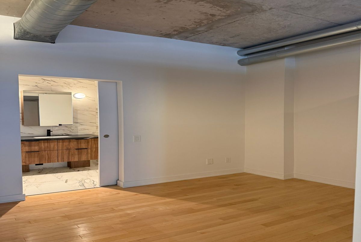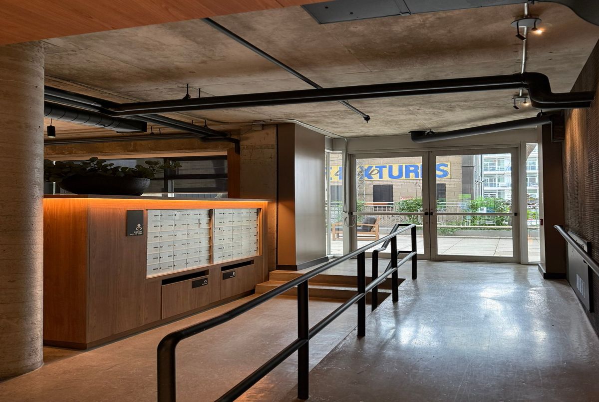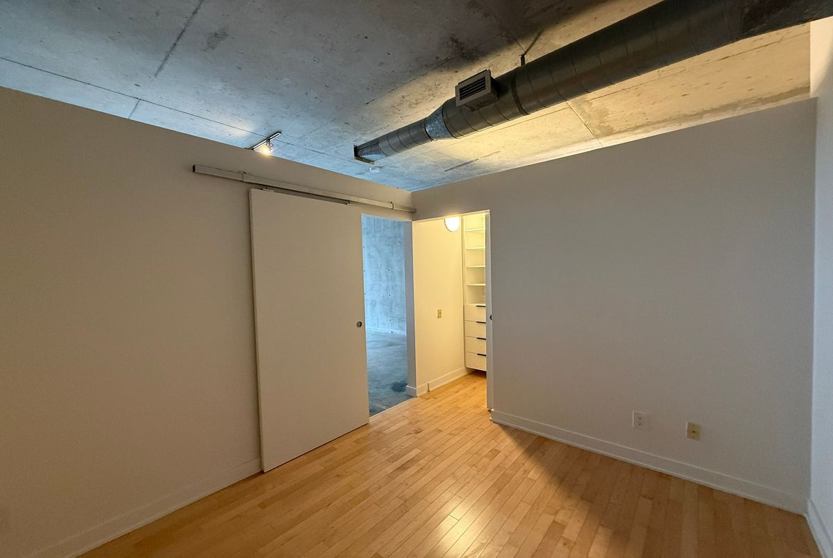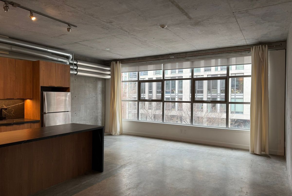 Fully Renovated Loft at Camden Lofts in Queen West. Loft features a 1-bed, 1-bath in one of Toronto's most sought-after boutique buildings. Features 10-ft exposed concrete ceilings, warehouse-style windows, exposed ductwork, and a bright open-concept layout. Brand new modern kitchen with quartz countertops, large Island with seating, stainless steel appliances, and custom front millwork closet. Brand new Spa-inspired bathroom with stand up shower and custom vanity. Bedroom features a custom walk in closet to maximize storage space. Located on a quiet street just steps to Queen West, parks, transit, dining, and nightlife. Boutique 59-unit building with a strong community feel. Lobby & hallways completed renovated, amenities include a party room, a secluded courtyard with BBQs, bicycle storage and visitor parking.