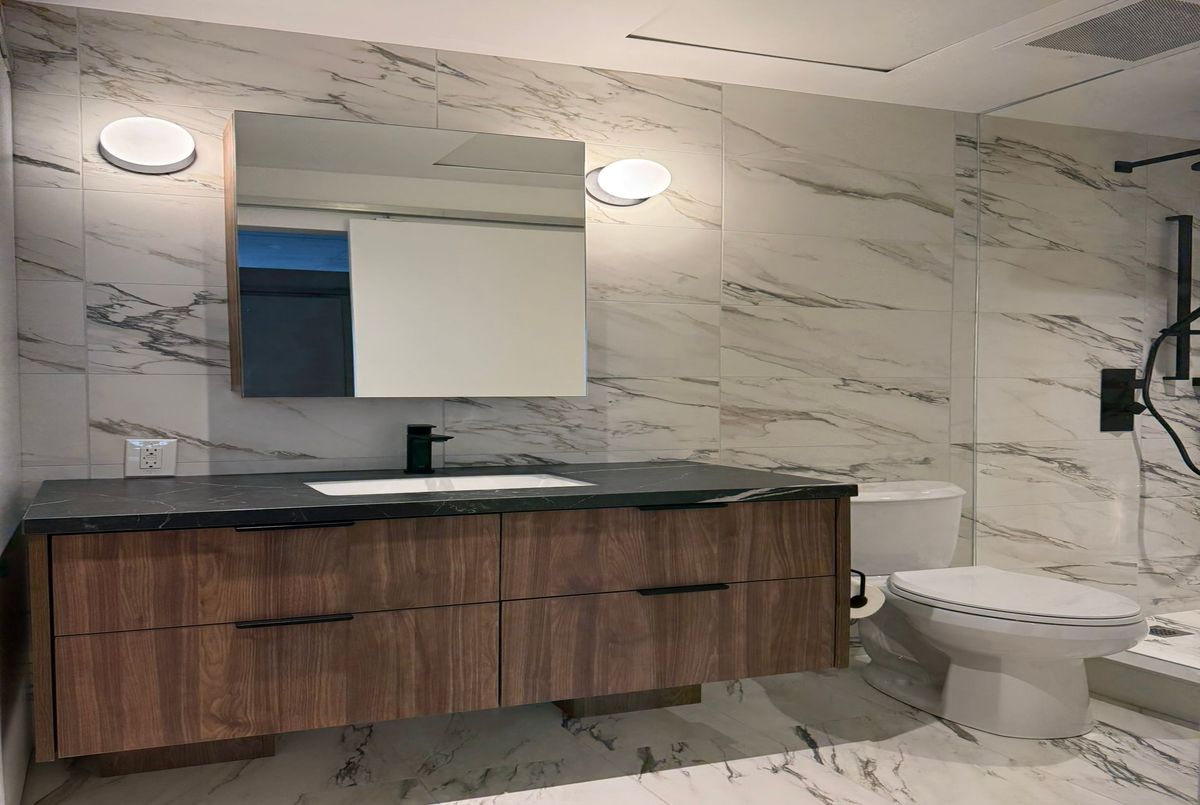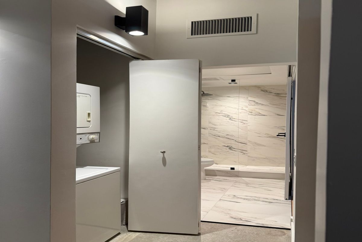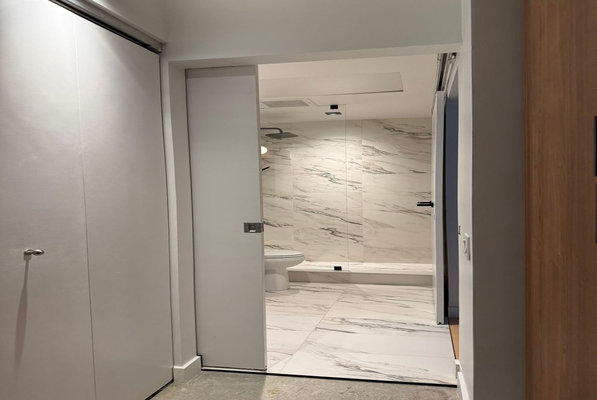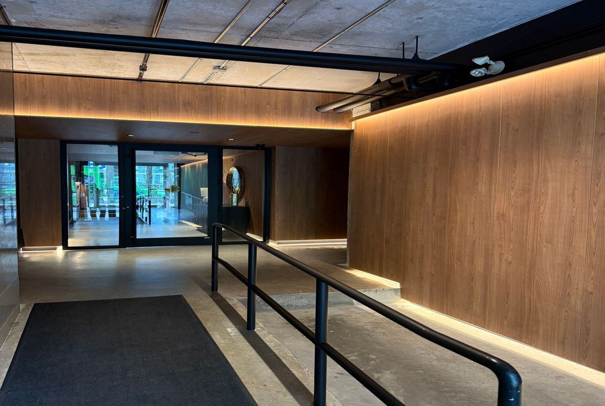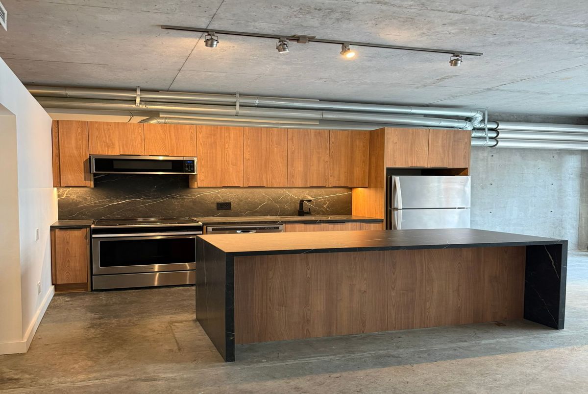 Fully Renovated Loft at Camden Lofts in Queen West. Loft features a 1-bed, 1-bath in one of Toronto's most sought-after boutique buildings. Features 10-ft exposed concrete ceilings, warehouse-style windows, exposed ductwork, and a bright open-concept layout. Brand new modern kitchen with quartz countertops, large Island with seating, stainless steel appliances, and custom front millwork closet. Brand new Spa-inspired bathroom with stand up shower and custom vanity. Bedroom features a custom walk in closet to maximize storage space. Located on a quiet street just steps to Queen West, parks, transit, dining, and nightlife. Boutique 59-unit building with a strong community feel. Lobby & hallways completed renovated, amenities include a party room, a secluded courtyard with BBQs, bicycle storage and visitor parking.