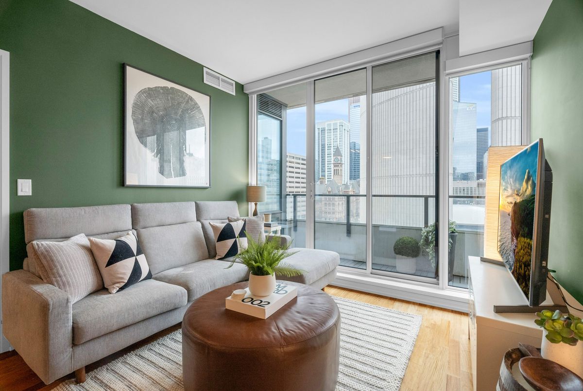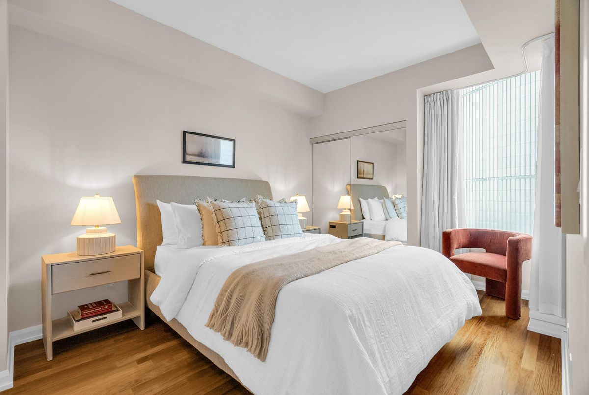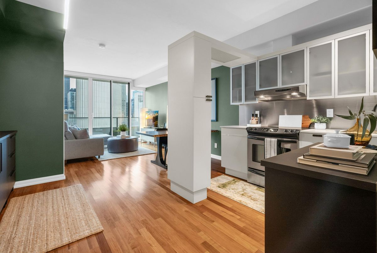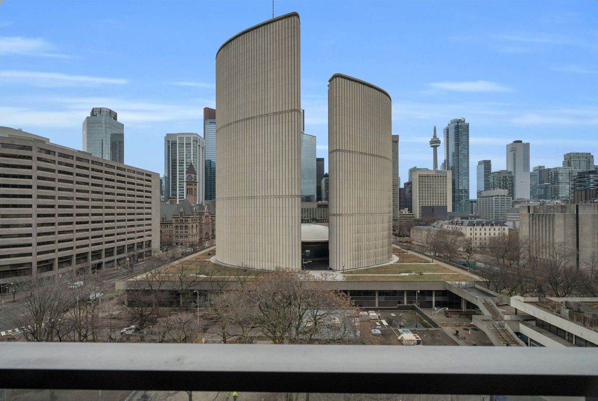 Discover elevated downtown living in this beautifully updated 1+1 bedroom, 2-bath suite with stunning south-facing views. Boasting 779 sq ft of thoughtfully designed space, this sun-drenched unit features engineered hardwood floors throughout, a sleek modern kitchen with stainless steel appliances, full oven, and quartz countertops, plus two recently renovated spa-like bathrooms with new modern vanities. Wake up to iconic CN Tower views from the generous-sized primary bedroom w/ a stunning ensuite. The spacious den, complete with custom closets, offers incredible versatility and can easily be converted into a second bedroom, home office, or nursery perfect for your evolving lifestyle. Step out onto the balcony to soak in the stunning city views or unwind in your open-concept living space flooded with natural light. Your new home will include a prime parking spot on P3, a large 6' x 6' locker conveniently located nearby, and an owned, upgraded heat pump (2024). Located in a well-managed building with a newly updated 24-hour concierge and security desk (2024), offering seamless package reception and secure delivery handling. Residents enjoy access to top-tier amenities: a pool, jacuzzi, sauna, updated gym (2025), and a stylish multi-purpose room with kitchen, boardroom, and two-level entertaining space. EV charging is available for installation at your parking spot. Perfectly positioned in one of Torontos most dynamic and connected neighbourhoods, this location offers a 99 Walk Score and 100 Transit Score. You're surrounded by Torontos top hospitals including Mount Sinai, Toronto General, SickKids, and St. Michaels. Directly next to Toronto City Hall and the Eaton Centre, and with a full-service Longos at the bottom of the building, every convenience is at your doorstep. Experience the best of city living with acclaimed restaurants, cafes, and attractions just around the corner. ...