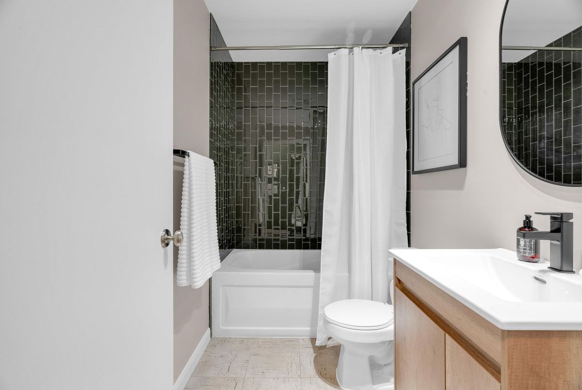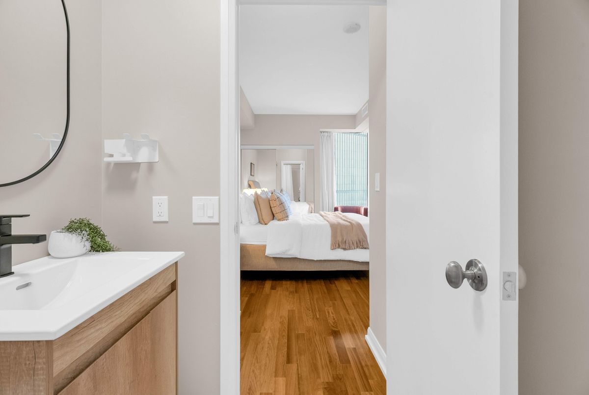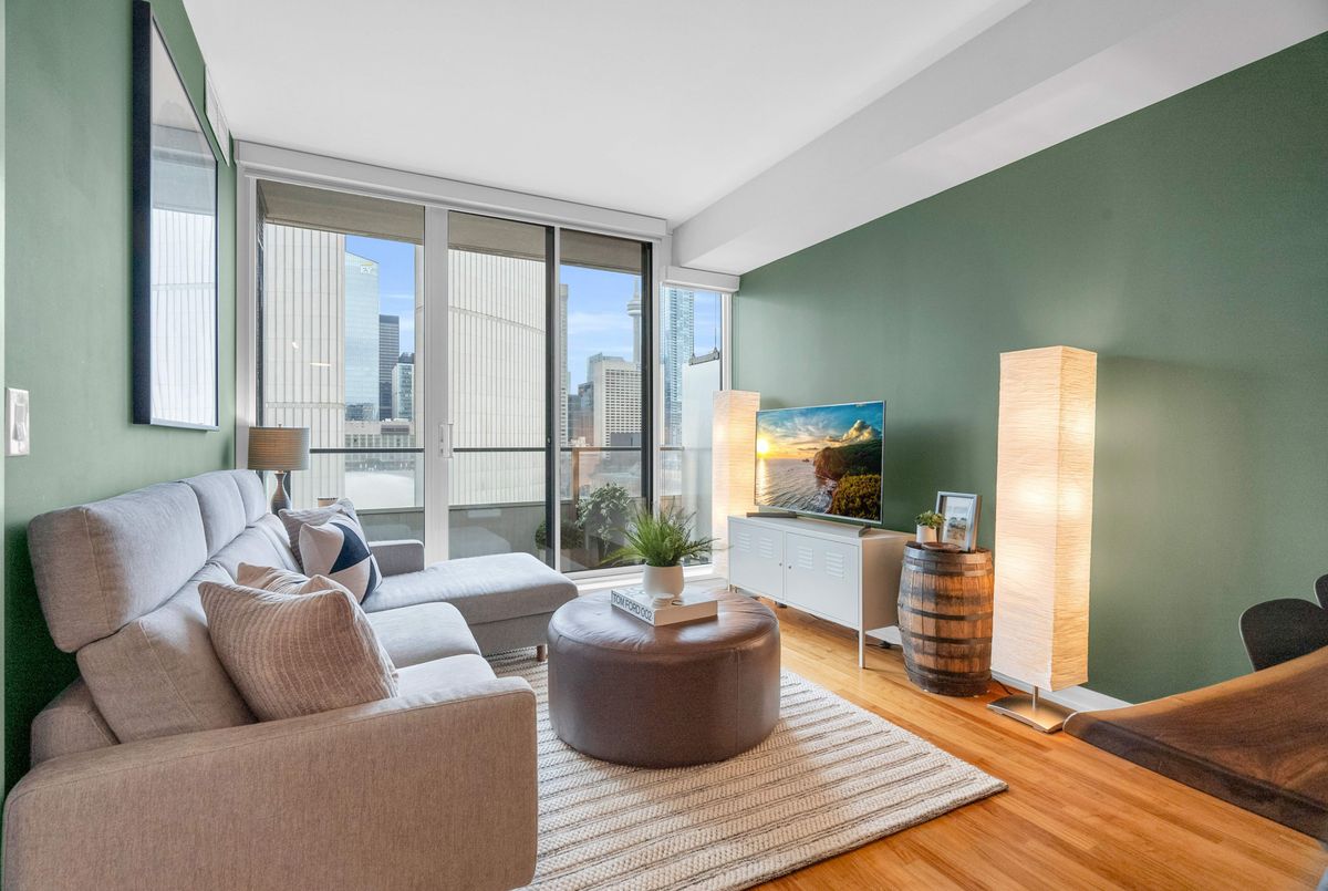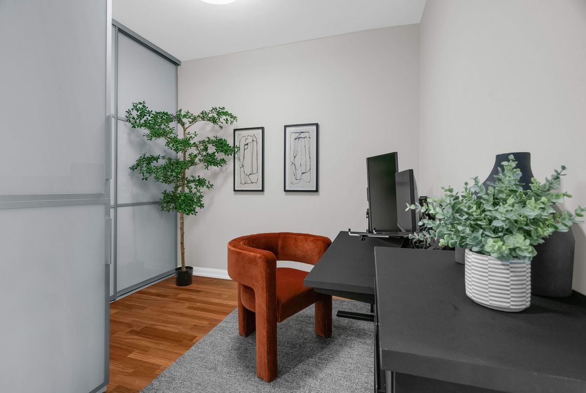 Discover elevated downtown living in this beautifully updated 1+1 bedroom, 2-bath suite with stunning south-facing views. Boasting 779 sq ft of thoughtfully designed space, this sun-drenched unit features engineered hardwood floors throughout, a sleek modern kitchen with stainless steel appliances, full oven, and quartz countertops, plus two recently renovated spa-like bathrooms with new modern vanities. Wake up to iconic CN Tower views from the generous-sized primary bedroom w/ a stunning ensuite. The spacious den, complete with custom closets, offers incredible versatility and can easily be converted into a second bedroom, home office, or nursery perfect for your evolving lifestyle. Step out onto the balcony to soak in the stunning city views or unwind in your open-concept living space flooded with natural light. Your new home will include a prime parking spot on P3, a large 6' x 6' locker conveniently located nearby, and an owned, upgraded heat pump (2024). Located in a well-managed building with a newly updated 24-hour concierge and security desk (2024), offering seamless package reception and secure delivery handling. Residents enjoy access to top-tier amenities: a pool, jacuzzi, sauna, updated gym (2025), and a stylish multi-purpose room with kitchen, boardroom, and two-level entertaining space. EV charging is available for installation at your parking spot. Perfectly positioned in one of Torontos most dynamic and connected neighbourhoods, this location offers a 99 Walk Score and 100 Transit Score. You're surrounded by Torontos top hospitals including Mount Sinai, Toronto General, SickKids, and St. Michaels. Directly next to Toronto City Hall and the Eaton Centre, and with a full-service Longos at the bottom of the building, every convenience is at your doorstep. Experience the best of city living with acclaimed restaurants, cafes, and attractions just around the corner. ...