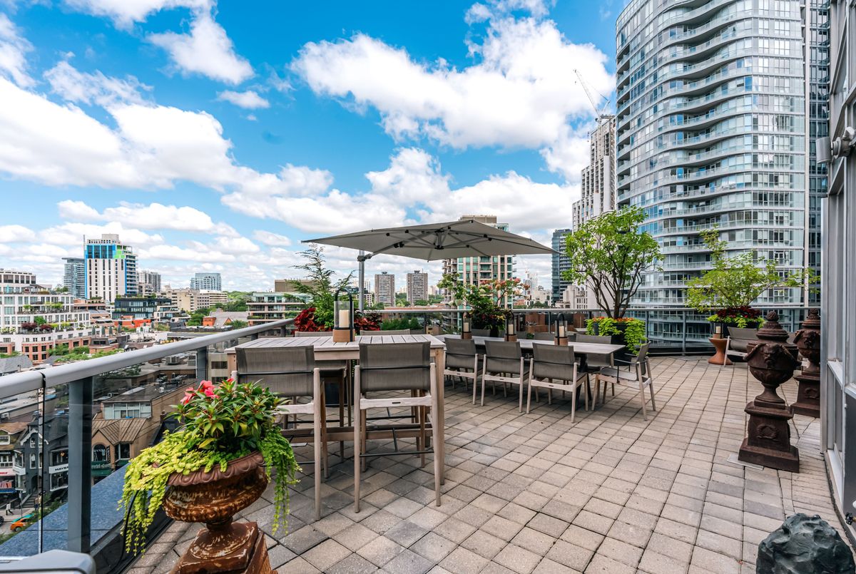 Be prepared to be amazed! An unbelievable 740-square-foot private terrace in the very heart of vibrant Yorkville. Overlooking the Village of Yorkville Park on Cumberland, this irreplaceable outdoor space is perfect for indoor-outdoor living and entertaining. It's equipped with an irrigation system for the large planters and a gas line for a BBQ. The terrace is so spacious that it has separate zones for living, dining, and grilling. Meticulously renovated (2024) under the discerning eye of McCallum Sather Architects, this stunning 2500 square foot residence at 10 Bellair offers an unparalleled living experience, with finishes of the highest level. Step inside and be captivated by the exquisite designer elements throughout. The herringbone white Oak hardwood floors were imported from Austria. Enter the sublime open-concept double living space with massive windows. A custom three-sided contemporary fireplace by Igne Ferro, clad in powder coated metal with a honed Bianco Carrera marble bench, serves as a striking focal point. The gourmet kitchen, featuring custom Scavolini cabinetry, a suite of Thermador appliances (Gaggenau dishwasher) including the wine tower, and Macchia Oro quartzite countertops, is a culinary enthusiast's dream and opens directly into the dining room. The primary suite offers a serene escape has Scavolini wall-to-wall closets. It has a 5-piece marble-clad spa-like ensuite bathroom. The split floor plan ensures maximum privacy, with the second bedroom, also with a super deluxe marble clad bathroom, is located at the opposite end of the suite. The den / home office affords a flexible space with a recessed niche for a desk and accommodates a pull-out sofa in the seating area. This exceptional and sophisticated condominium includes two parking spaces and two enormous locker rooms, providing ample storage. Enjoy year-round comfort with two updated, individually controlled Daikin heat pump systems. Simply incredible!