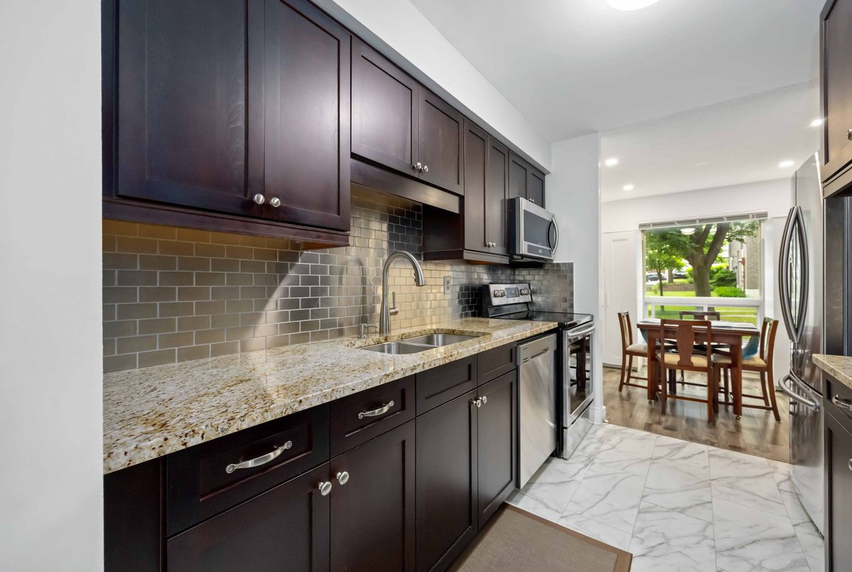 A beautifully renovated townhouse in a highly desirable area of North York. Fully renovated, brand new washroom added to the basement. A quiet location in the heart of the city surrounded by large mature trees, trails and parks. Walking distances to schools, shops, amenities, and TTC. With easy access to Highway 401 & 404. Close proximity to Seneca College, Fairview mall, Public Library, and Medical Buildings. Condominium is well managed, while maintaining low fees, and providing home owners with many benefits, including cable, water, lawn maintenance, snow removal, and much more.