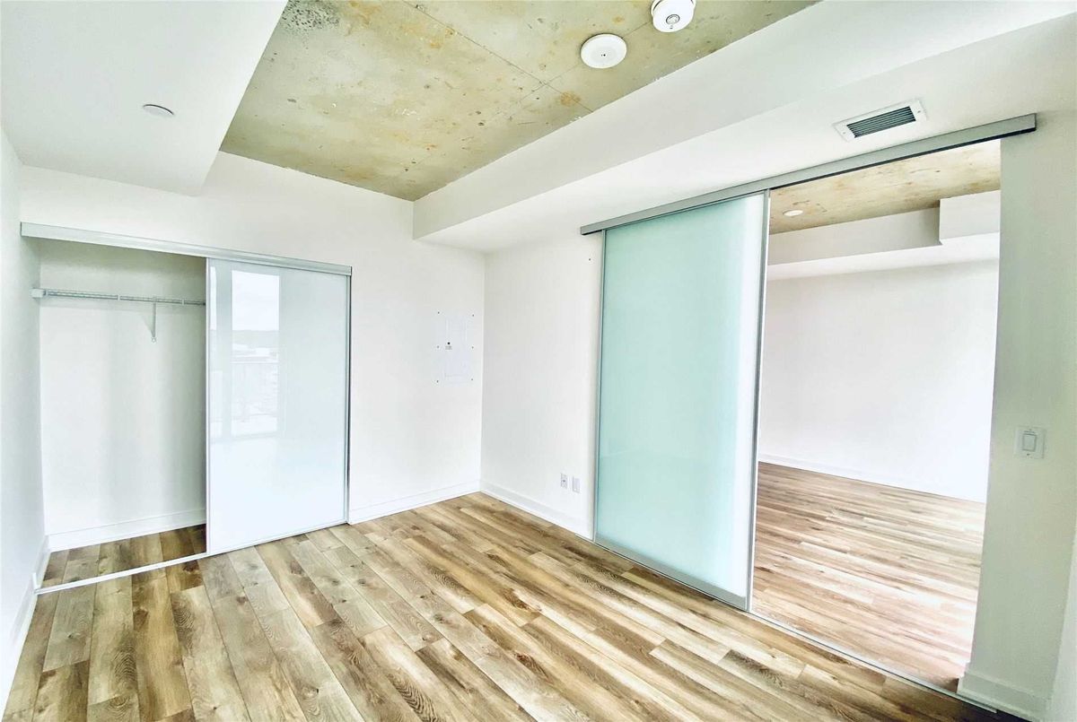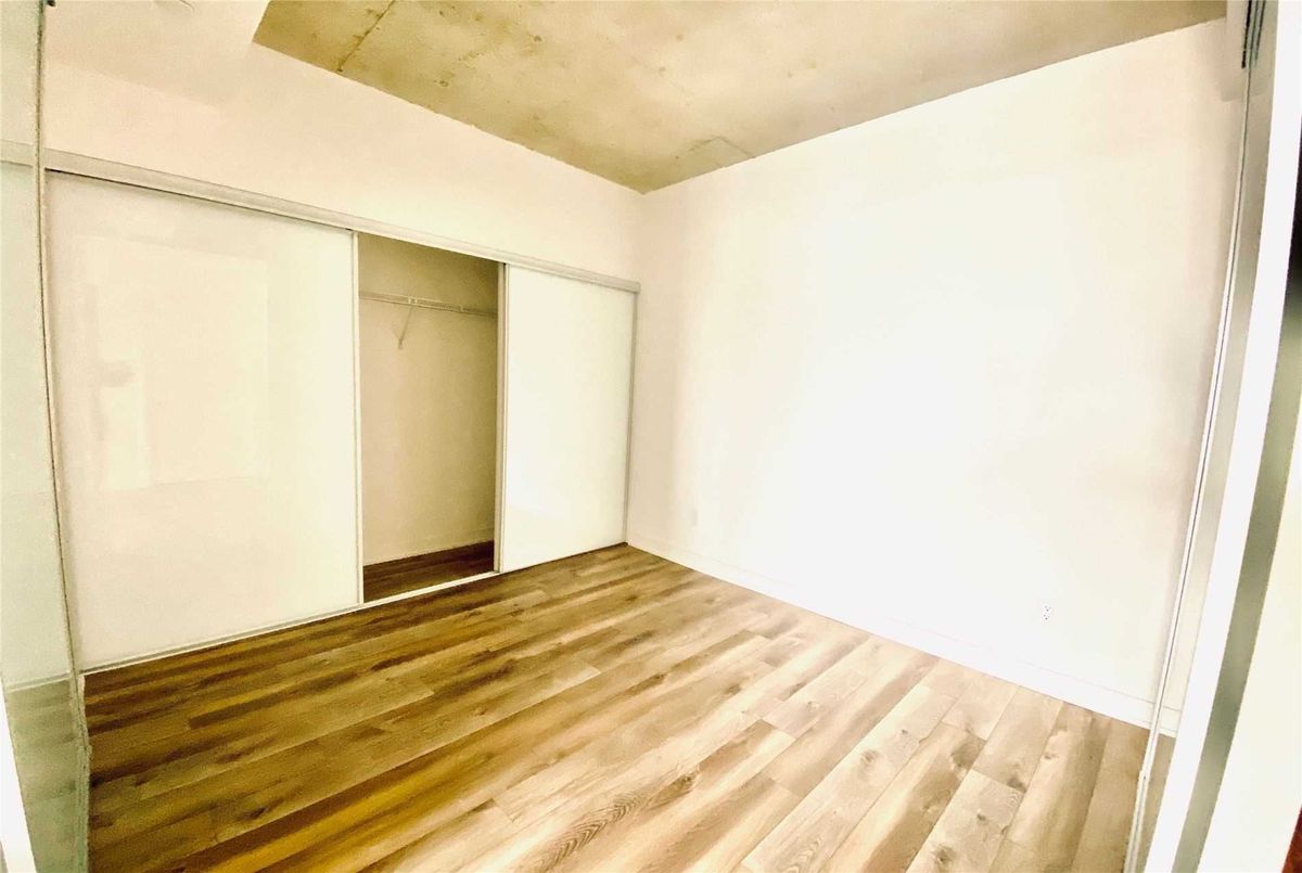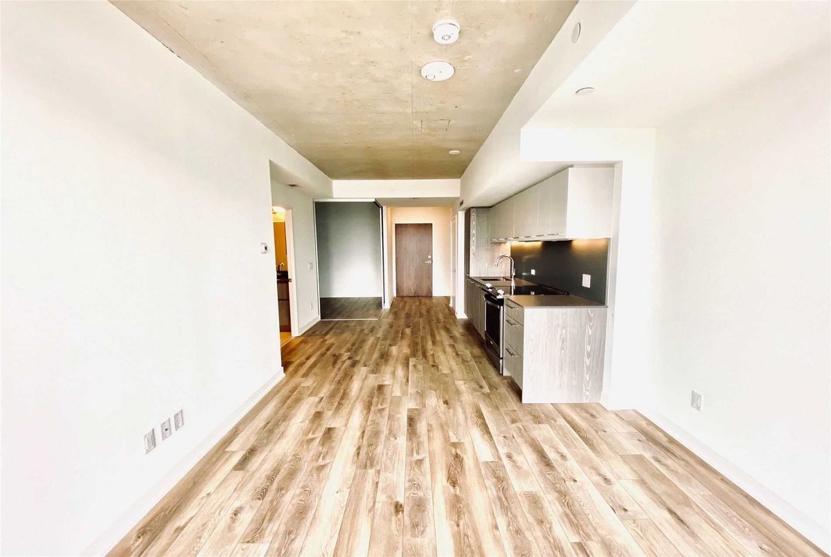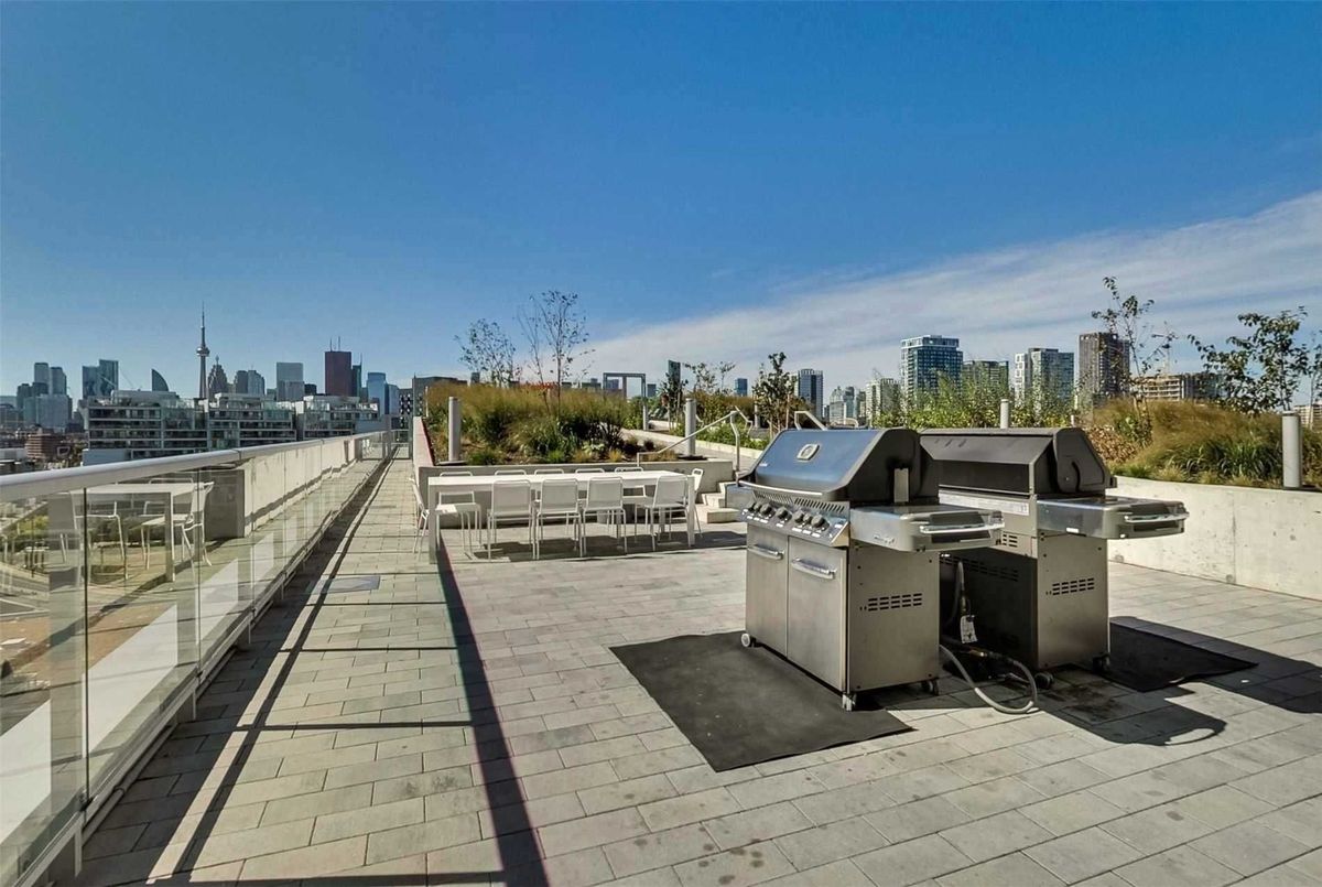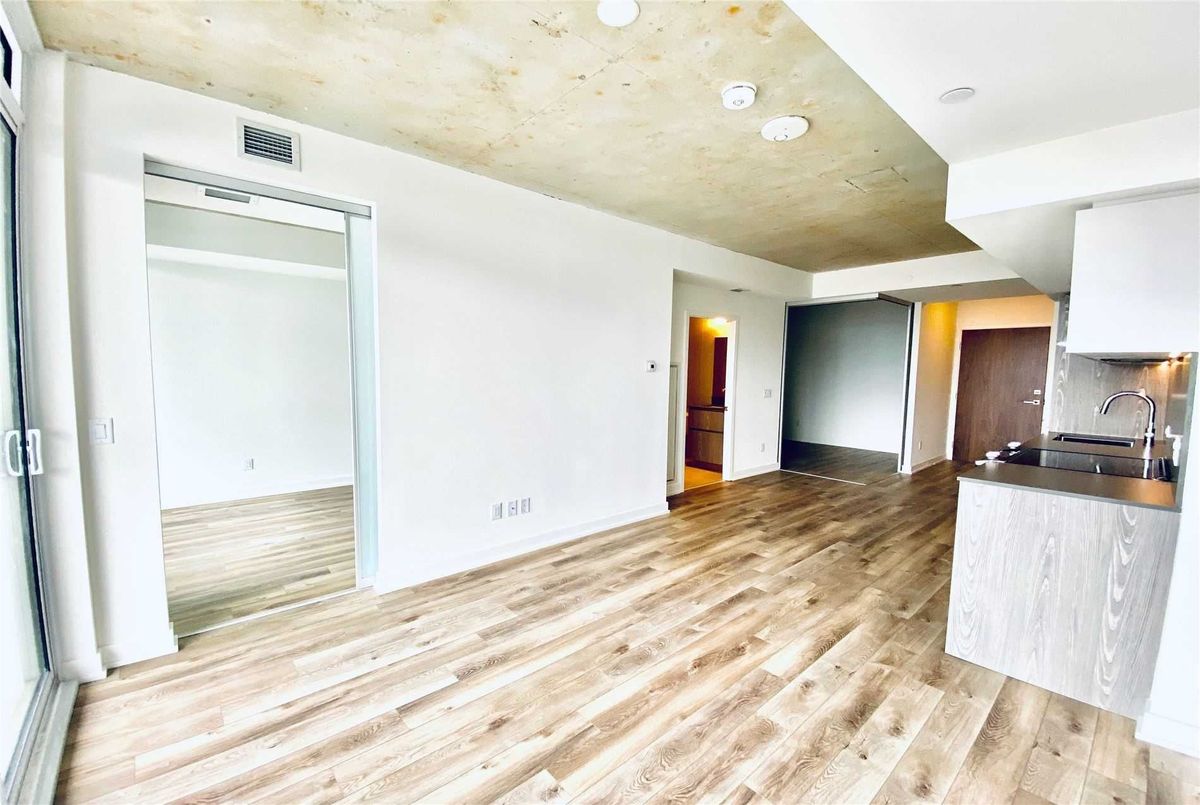Welcome to Riverside Square, located in one of Toronto's most exciting and evolving east-end neighbourhoods. This bright and beautifully finished 2-bedroom, 1-bathroom condo offers a smart, functional layout with a split-bedroom design that provides privacy and flexibility. Perfect for professionals, roommates, or couples working from home, the open-concept living and dining area is designed for modern urban living with no wasted space. The sleek kitchen features built-in appliances, quartz countertops, and contemporary cabinetry, ideal for both everyday cooking and entertaining. High exposed concrete ceilings and large windows fill the unit with natural light while adding a stylish, loft-inspired feel. Walk out to a spacious balcony that offers the perfect place to relax or enjoy a coffee outdoors. Riverside Square offers a true city lifestyle. Conveniently located just off the DVP and within walking distance to Queen Street East, you are surrounded by cafes, shops, restaurants, and local markets. The streetcar is just steps away for quick access to the downtown core. With a Walk Score of 95, this location is a walker's paradise where daily errands do not require a car. Come and enjoy the perfect blend of modern design, community feel, and city convenience in this well-managed, sought-after building. *Please note that the photos are from when the property was vacant.