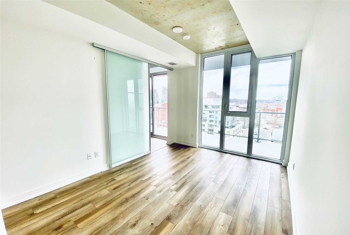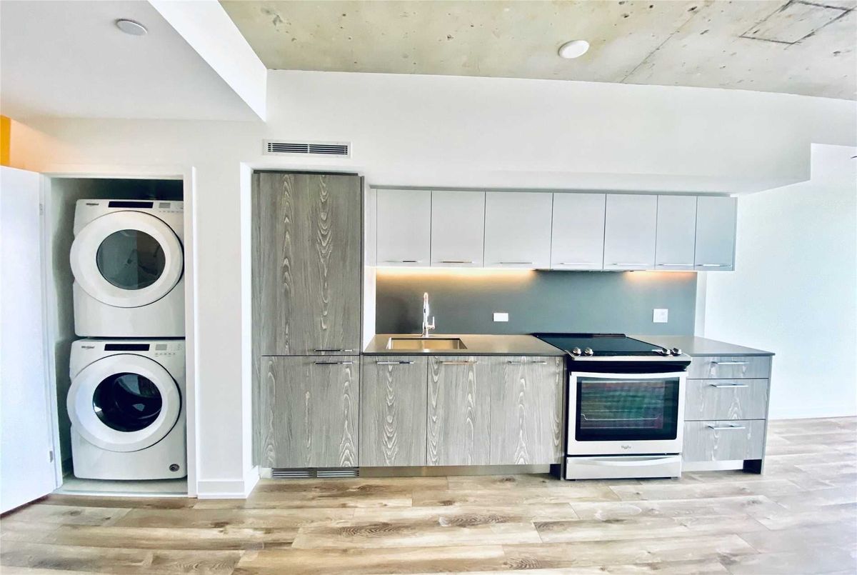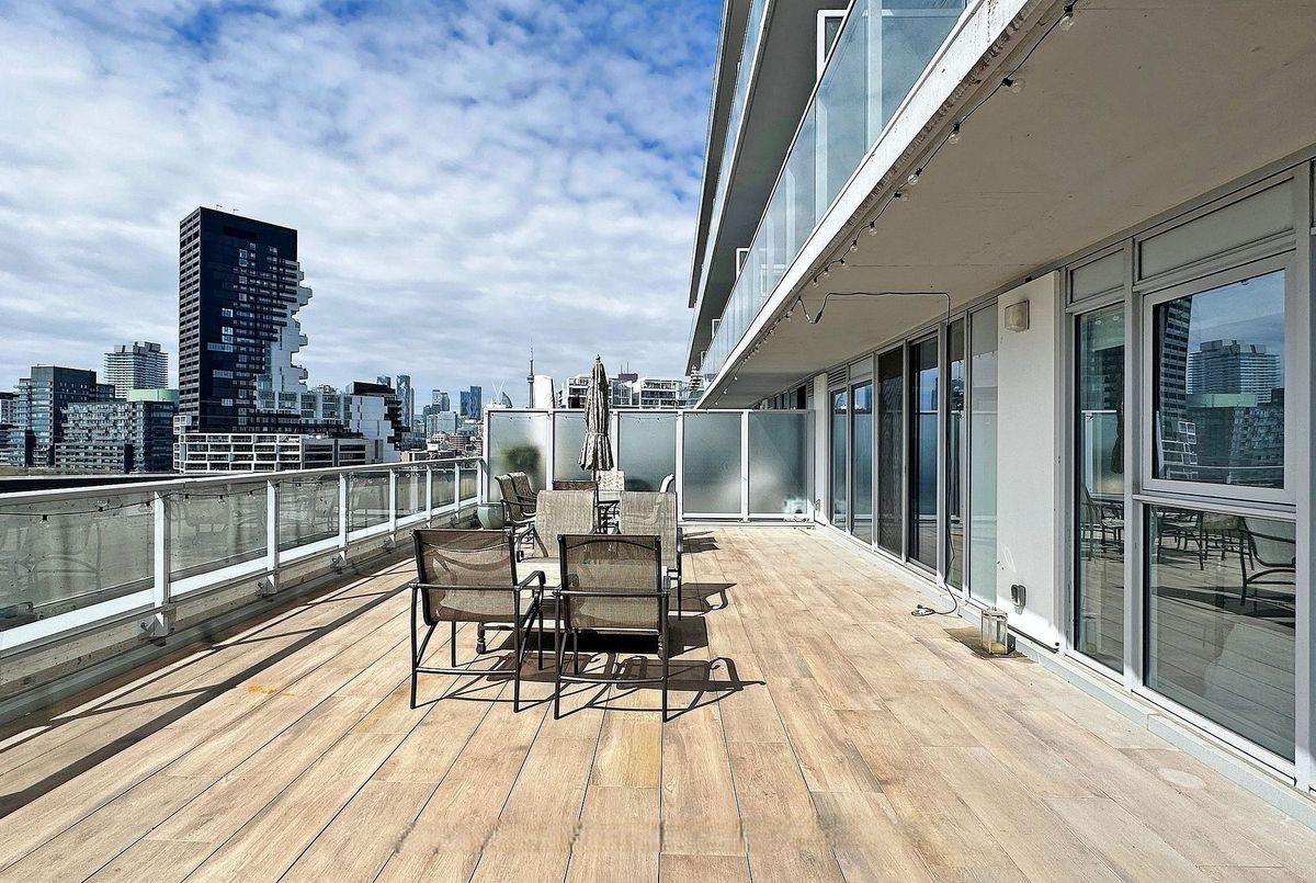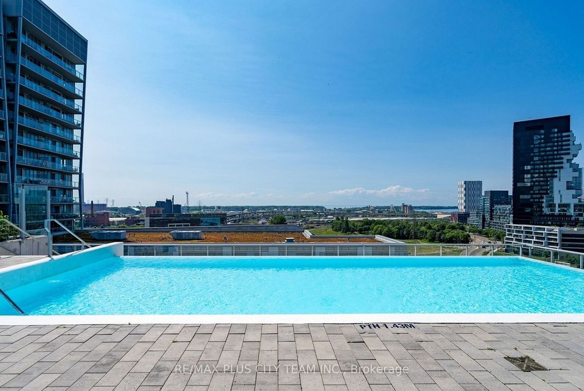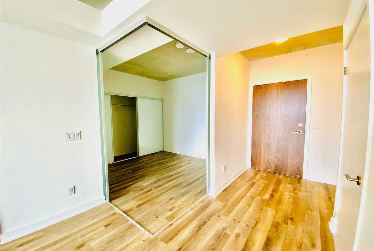 Welcome to Riverside Square, located in one of Toronto's most exciting and evolving east-end neighbourhoods. This bright and beautifully finished 2-bedroom, 1-bathroom condo offers a smart, functional layout with a split-bedroom design that provides privacy and flexibility. Perfect for professionals, roommates, or couples working from home, the open-concept living and dining area is designed for modern urban living with no wasted space. The sleek kitchen features built-in appliances, quartz countertops, and contemporary cabinetry, ideal for both everyday cooking and entertaining. High exposed concrete ceilings and large windows fill the unit with natural light while adding a stylish, loft-inspired feel. Walk out to a spacious balcony that offers the perfect place to relax or enjoy a coffee outdoors. Riverside Square offers a true city lifestyle. Conveniently located just off the DVP and within walking distance to Queen Street East, you are surrounded by cafes, shops, restaurants, and local markets. The streetcar is just steps away for quick access to the downtown core. With a Walk Score of 95, this location is a walker's paradise where daily errands do not require a car. Come and enjoy the perfect blend of modern design, community feel, and city convenience in this well-managed, sought-after building. *Please note that the photos are from when the property was vacant.