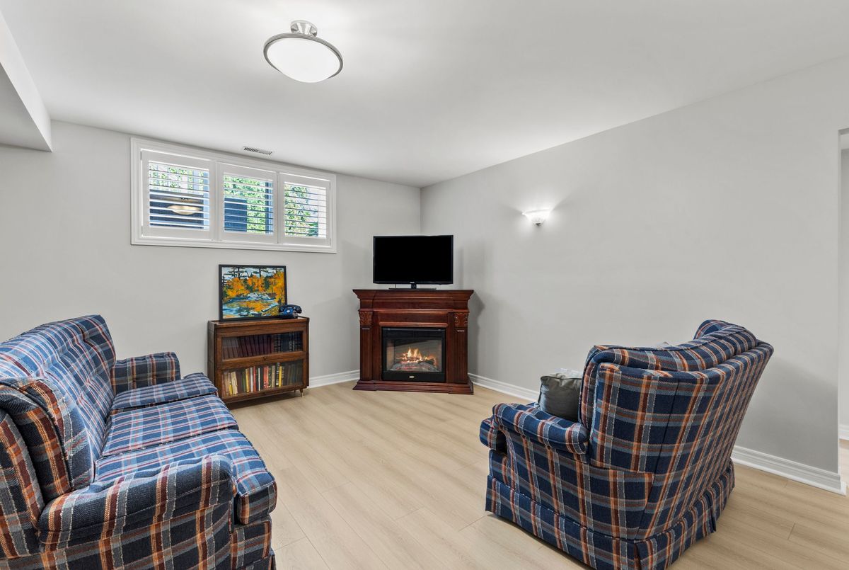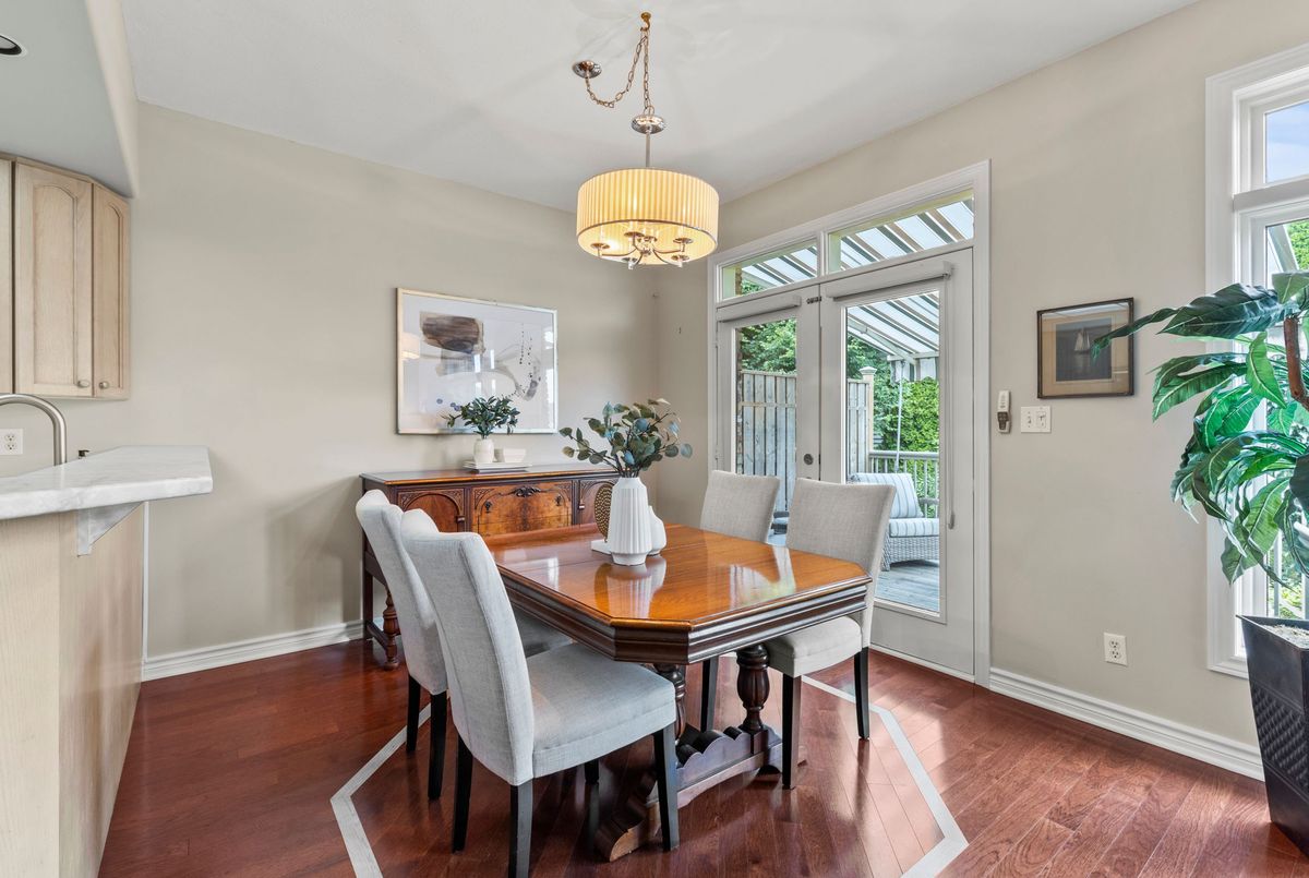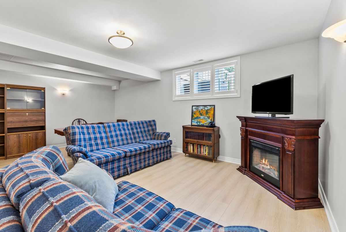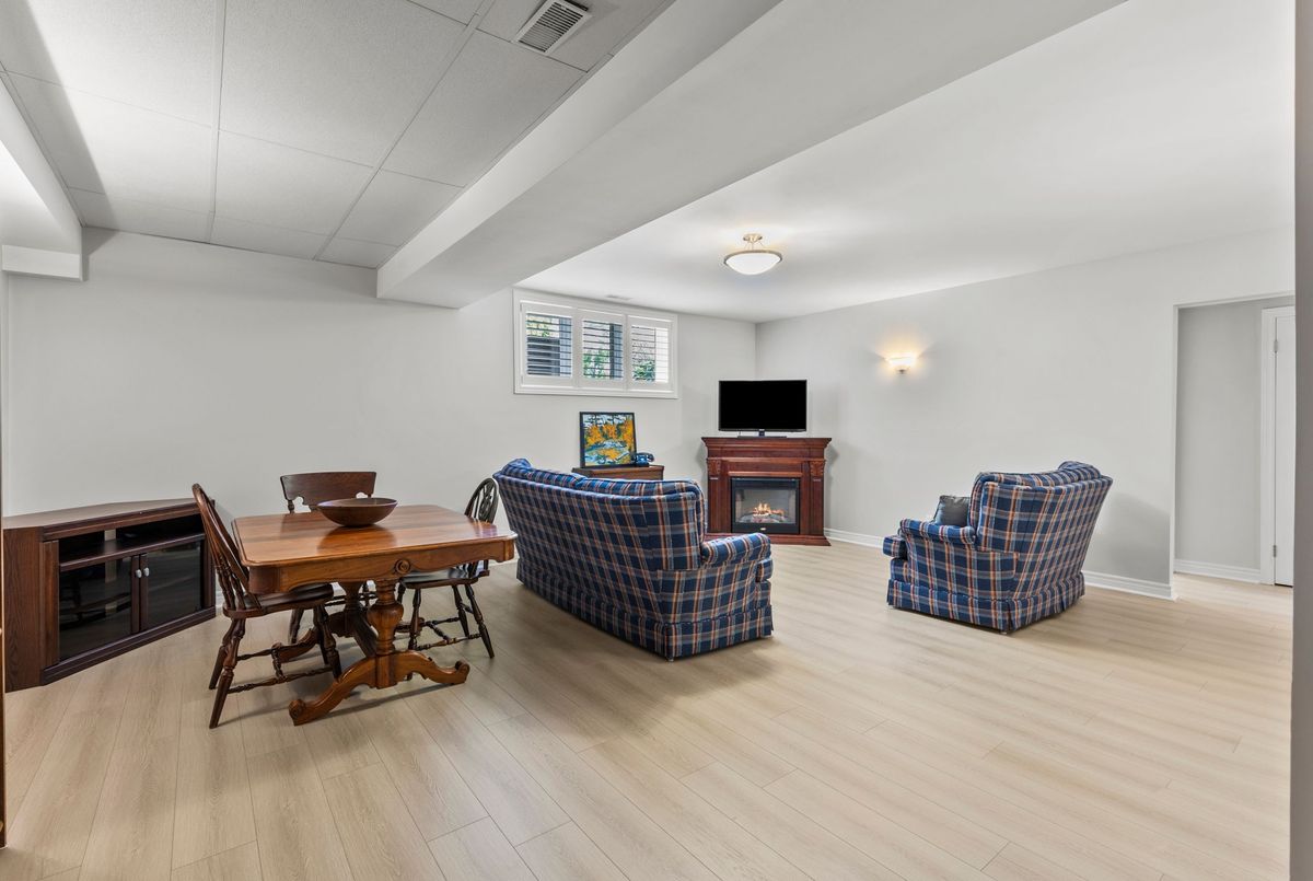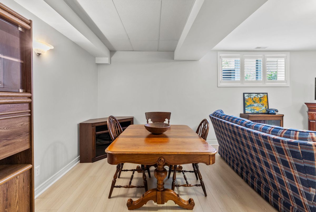 End-unit bungalow tucked away at the end of a quiet street, this is truly one of the most desirable units in this enclave community. From the moment you step inside, you're welcomed by a spacious front foyer that flows seamlessly into the main living area. The living room features rich hardwood flooring and oversized windows that fill the space in natural light while offering views of the private backyard. Adjacent to the living room is a cozy dining area with elegant french doors that open to your own private deck, complete with a retractable power awning. The backyard also includes a grassy area ideal for pets or gardening. The kitchen overlooks the main living space and is outfitted with newer stainless steel appliances, offering both function and style. The main floor includes two well-appointed bedrooms. The primary bedroom overlooks the peaceful backyard, while the front bedroom (previously used as a secondary living space) offers a charming view of the front yard through its large bay window. These bedrooms share a stylish four-piece bathroom with granite countertops. A thoughtfully designed laundry room with plenty of storage completes the main floor. The fully finished lower level adds additional living space, featuring fresh paint, updated flooring and California shutters. This level includes an expansive rec room, third bedroom with a double closet, three-piece bathroom and a versatile craft or hobby room. The low monthly maintenance fees include water, lawn care, snow removal, exterior maintenance (including roof and windows) and more, offering exceptional value and peace of mind. If you're looking for a well-maintained move-in ready home with minimal upkeep this is a perfect opportunity to enjoy carefree living.