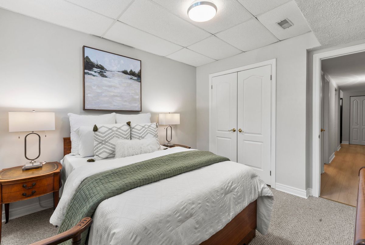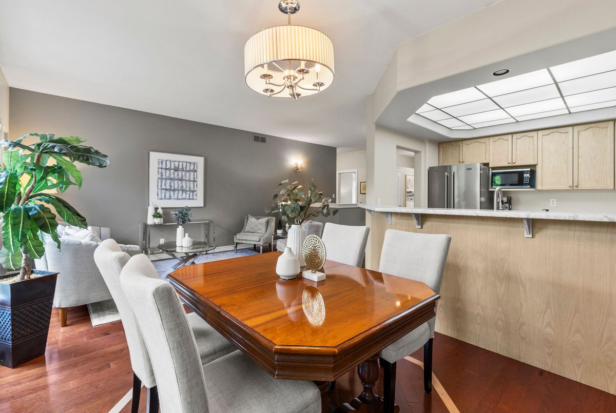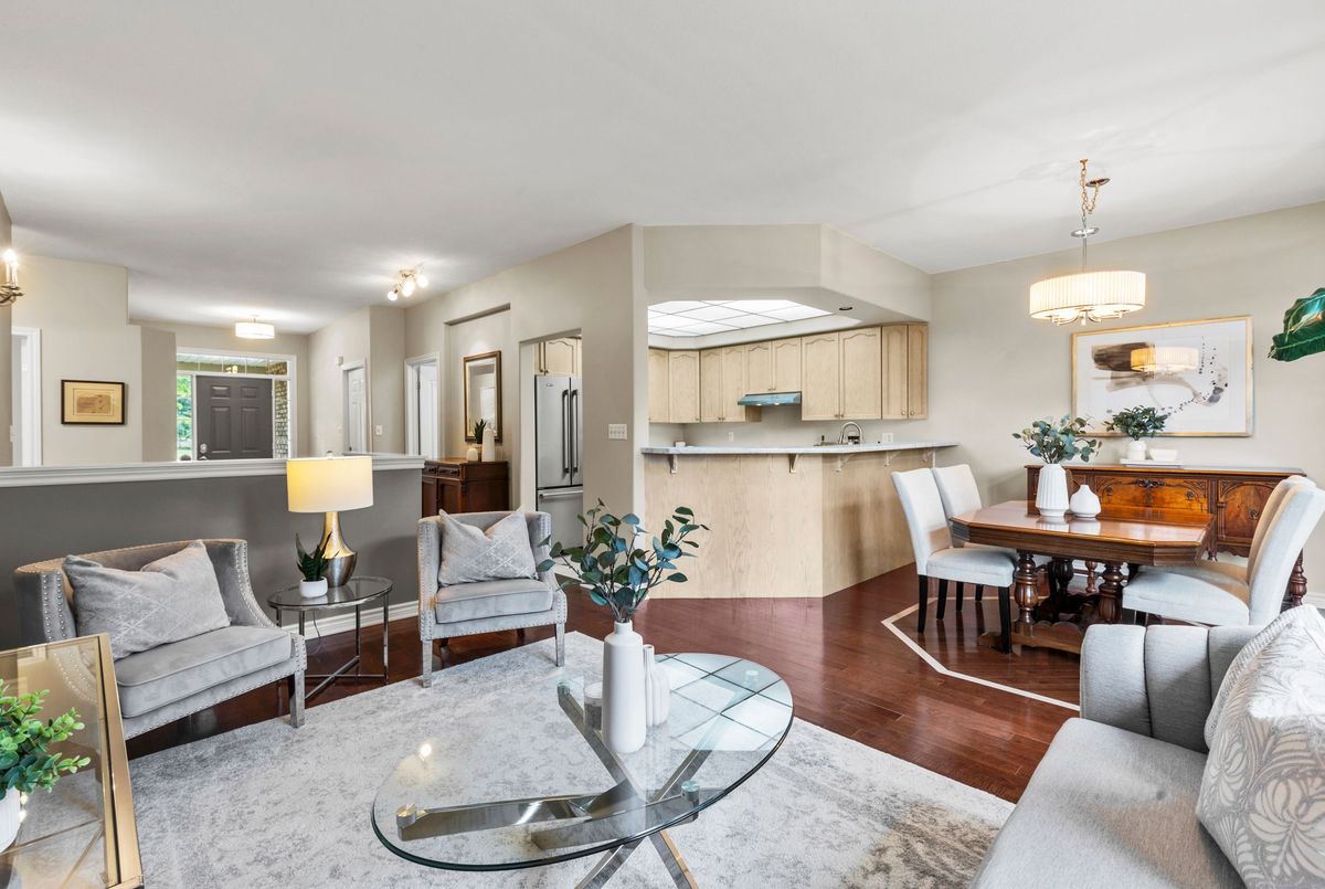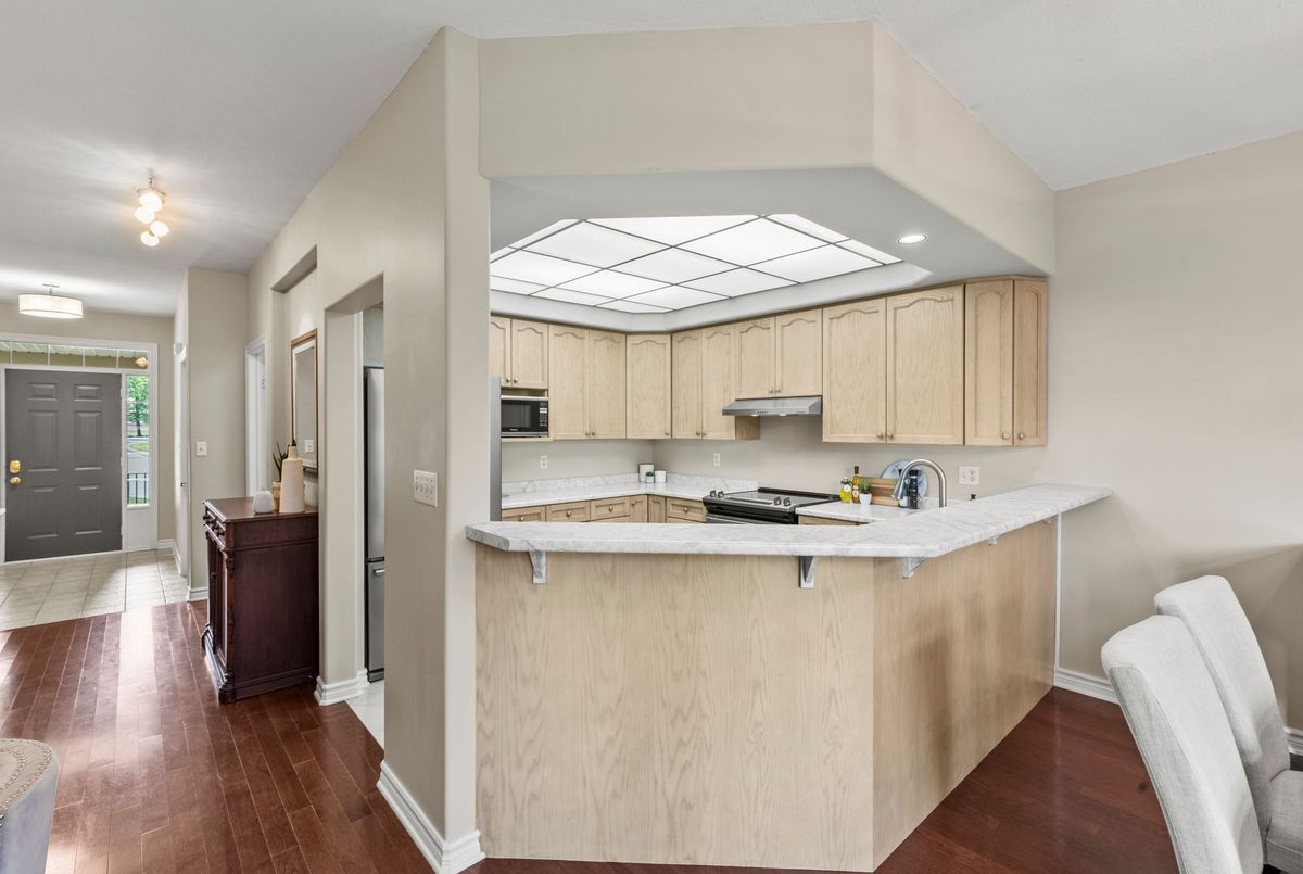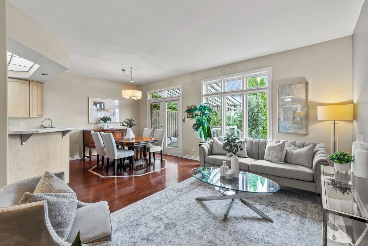 End-unit bungalow tucked away at the end of a quiet street, this is truly one of the most desirable units in this enclave community. From the moment you step inside, you're welcomed by a spacious front foyer that flows seamlessly into the main living area. The living room features rich hardwood flooring and oversized windows that fill the space in natural light while offering views of the private backyard. Adjacent to the living room is a cozy dining area with elegant french doors that open to your own private deck, complete with a retractable power awning. The backyard also includes a grassy area ideal for pets or gardening. The kitchen overlooks the main living space and is outfitted with newer stainless steel appliances, offering both function and style. The main floor includes two well-appointed bedrooms. The primary bedroom overlooks the peaceful backyard, while the front bedroom (previously used as a secondary living space) offers a charming view of the front yard through its large bay window. These bedrooms share a stylish four-piece bathroom with granite countertops. A thoughtfully designed laundry room with plenty of storage completes the main floor. The fully finished lower level adds additional living space, featuring fresh paint, updated flooring and California shutters. This level includes an expansive rec room, third bedroom with a double closet, three-piece bathroom and a versatile craft or hobby room. The low monthly maintenance fees include water, lawn care, snow removal, exterior maintenance (including roof and windows) and more, offering exceptional value and peace of mind. If you're looking for a well-maintained move-in ready home with minimal upkeep this is a perfect opportunity to enjoy carefree living.