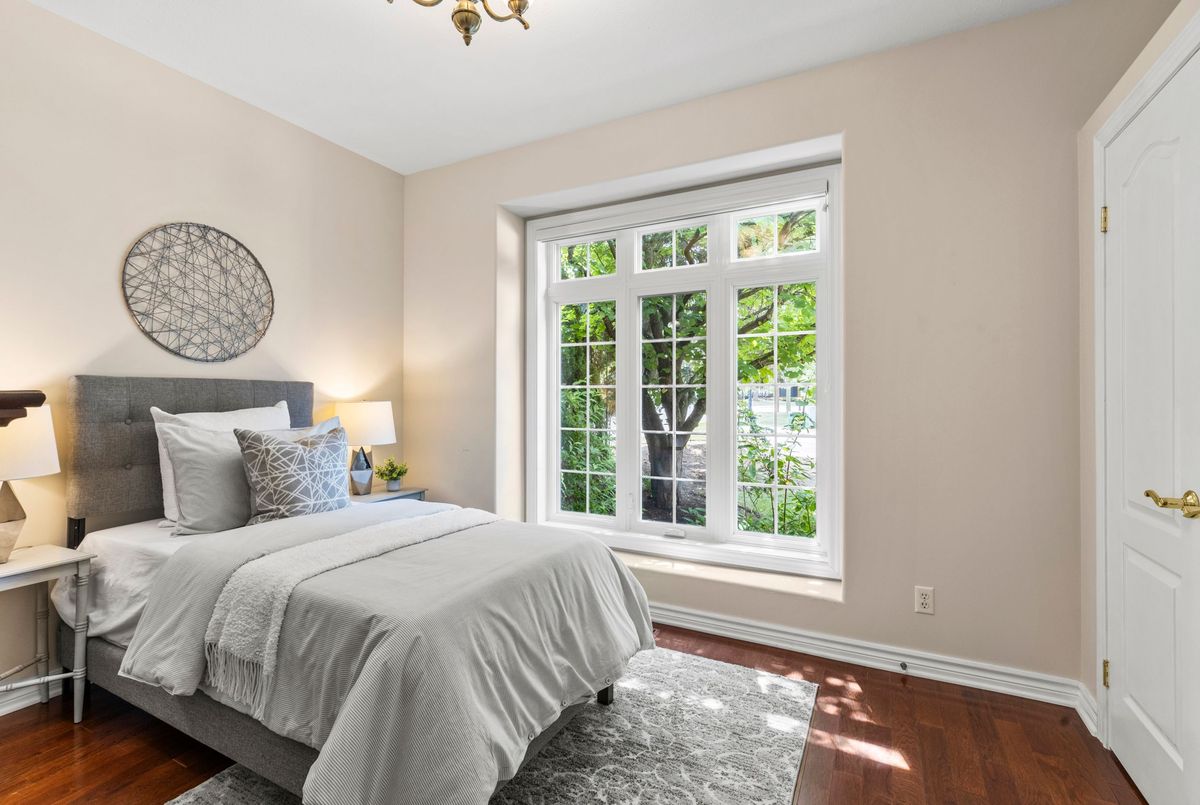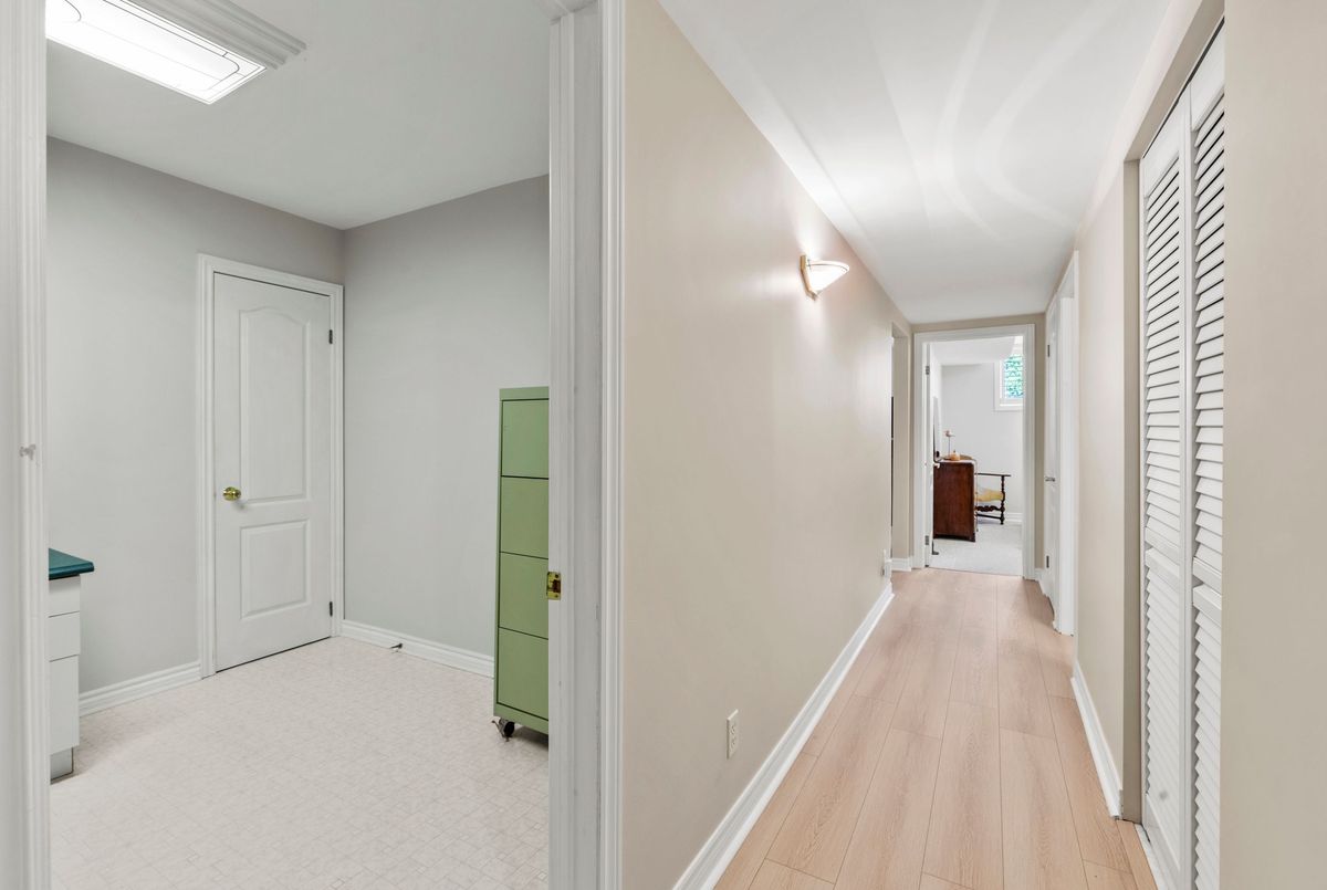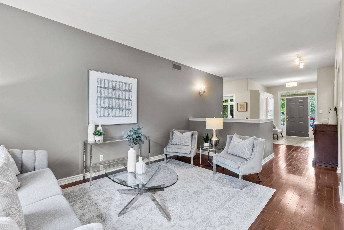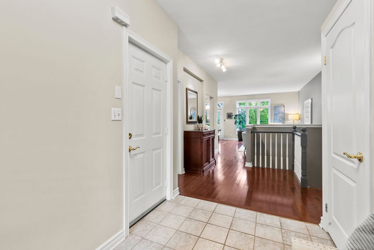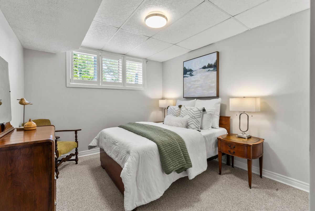 End-unit bungalow tucked away at the end of a quiet street, this is truly one of the most desirable units in this enclave community. From the moment you step inside, you're welcomed by a spacious front foyer that flows seamlessly into the main living area. The living room features rich hardwood flooring and oversized windows that fill the space in natural light while offering views of the private backyard. Adjacent to the living room is a cozy dining area with elegant french doors that open to your own private deck, complete with a retractable power awning. The backyard also includes a grassy area ideal for pets or gardening. The kitchen overlooks the main living space and is outfitted with newer stainless steel appliances, offering both function and style. The main floor includes two well-appointed bedrooms. The primary bedroom overlooks the peaceful backyard, while the front bedroom (previously used as a secondary living space) offers a charming view of the front yard through its large bay window. These bedrooms share a stylish four-piece bathroom with granite countertops. A thoughtfully designed laundry room with plenty of storage completes the main floor. The fully finished lower level adds additional living space, featuring fresh paint, updated flooring and California shutters. This level includes an expansive rec room, third bedroom with a double closet, three-piece bathroom and a versatile craft or hobby room. The low monthly maintenance fees include water, lawn care, snow removal, exterior maintenance (including roof and windows) and more, offering exceptional value and peace of mind. If you're looking for a well-maintained move-in ready home with minimal upkeep this is a perfect opportunity to enjoy carefree living.