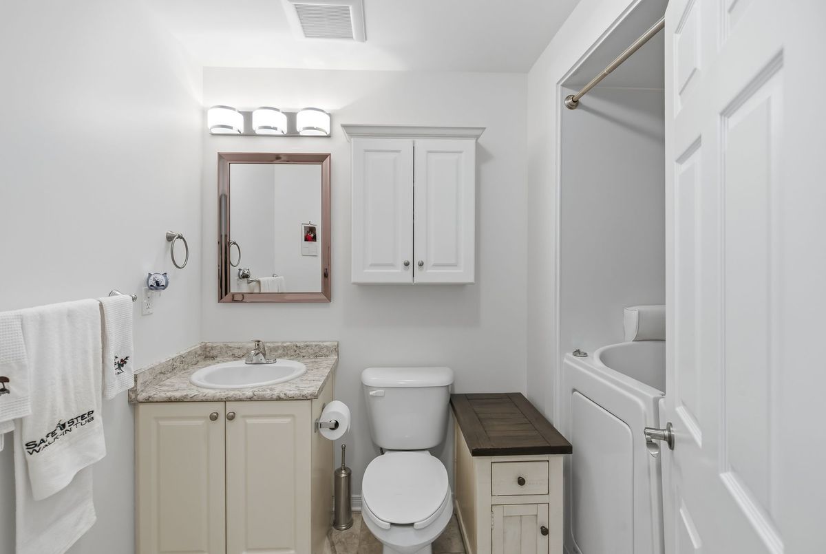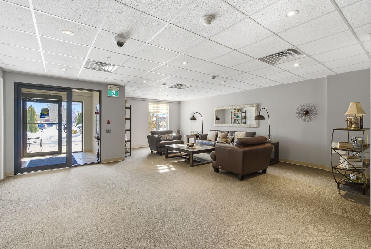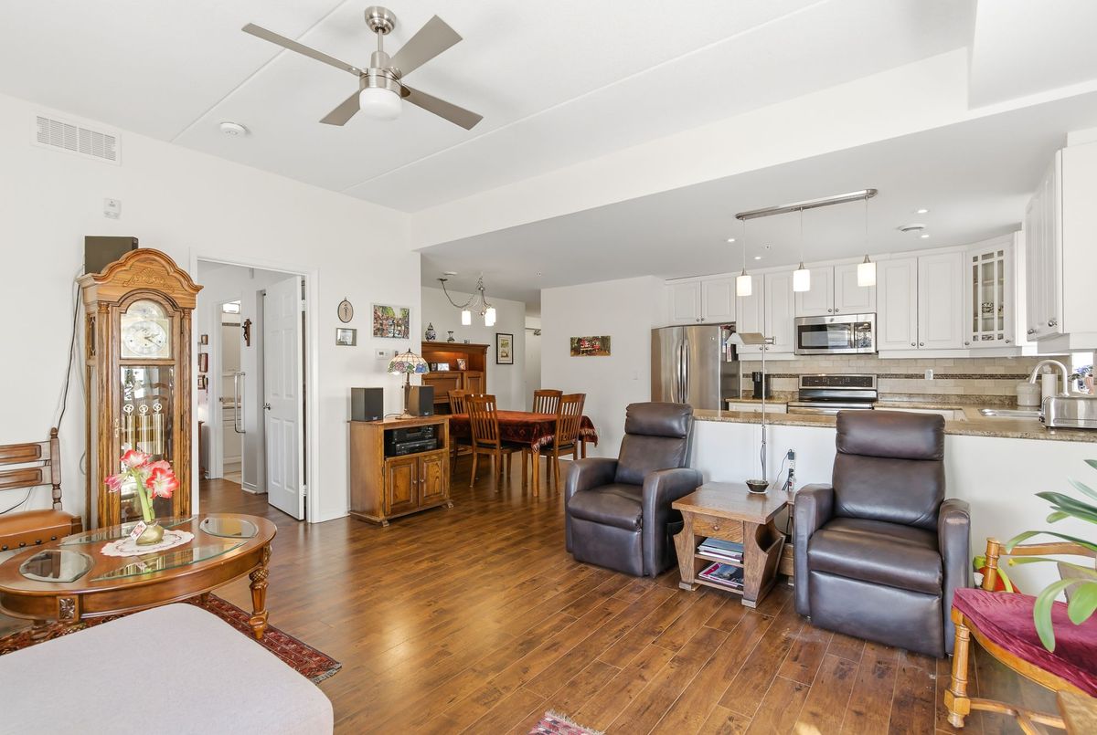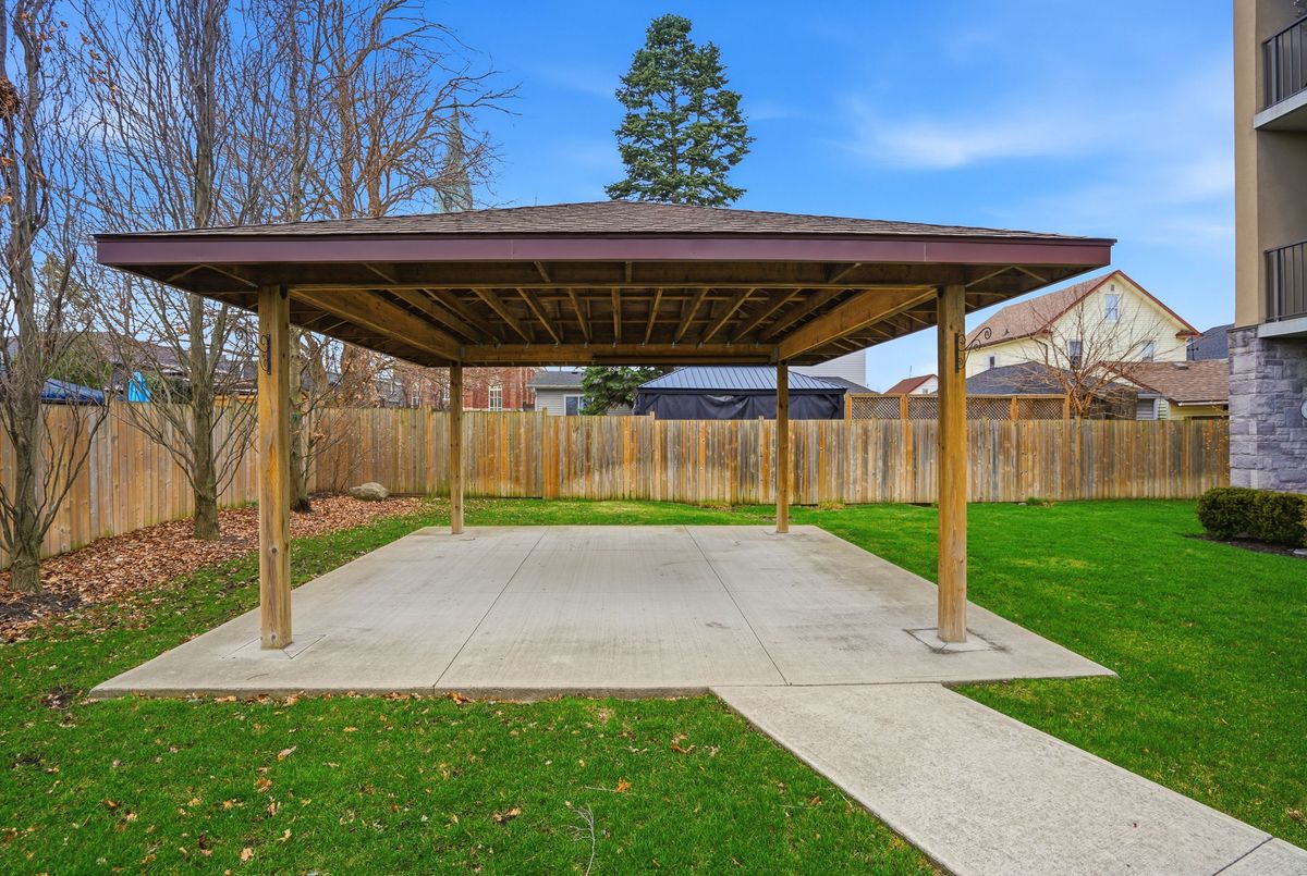 Walk right into your condo with no need to use the elevator! Convenient main floor 2 bedroom, 2 bath accessible condo over 1,100 square feet! Wonderfully kept and cared for by the owners since new in 2016. Wonderful natural light shines into this South-East exposure corner unit. Open design living area with white & bright kitchen with plenty of cabinets and counter-space with adjacent dining room area. Spacious living room with corner gas fireplace. Sliding patio doors to balcony - perfect for a morning coffee and a relaxing afternoon book read. Private split-bedroom layout with primary bedroom ensuite with easy step-in shower. The 2nd bedroom is currently used as a den and has an adjacent 3 piece bath with accessible step-in jetted bathtub. Laundry room with convenient stack-able washer and dryer and laundry tub. Includes central air, owned hot water tank, forced-air gas furnace, one surface parking space, private locker plus common area room for additional patio furniture and bike storage. This exceptionally maintained building also offers a large social room with kitchen and bathroom, exercise room, and a craft & hobby room. And for the spring to fall months you can enjoy the outdoor space with gazebo and bbq area. Condo fees are keep very reasonable by having no costly pool or underground parking to maintain. A great quiet neighbourhood too - just a short walk to shopping, groceries, pharmacy, dining, churches, transit plus quick access to highway 58, the 406 and onwards to the QEW and all that Niagara has to offer!